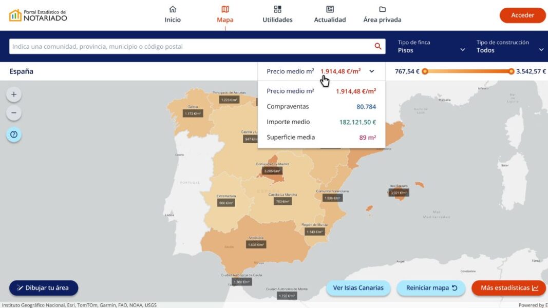 El portal, www.penotariado.com/inmobiliario/buscador-precio-vivienda, permite consultar el precio real de compraventa de viviendas en todo el país, con un nivel de detalle que llega hasta el Código Postal. Y dentro del Código Postal, en un radio de varias calles.